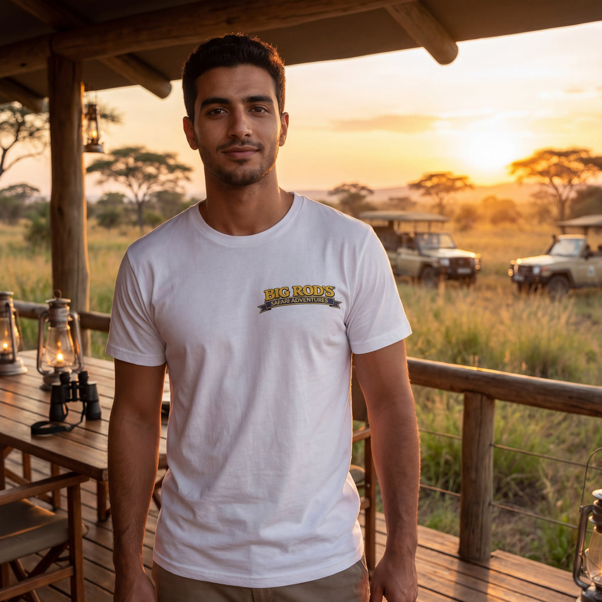 Answer 3: It’s all about the reveal. The front features a subtle, classy chest logo for a clean look under a jacket. The real conversation starter—the full-scale, vintage-inspired safari scene—is printed in high-definition on the back, ensuring you make an entrance and an exit.